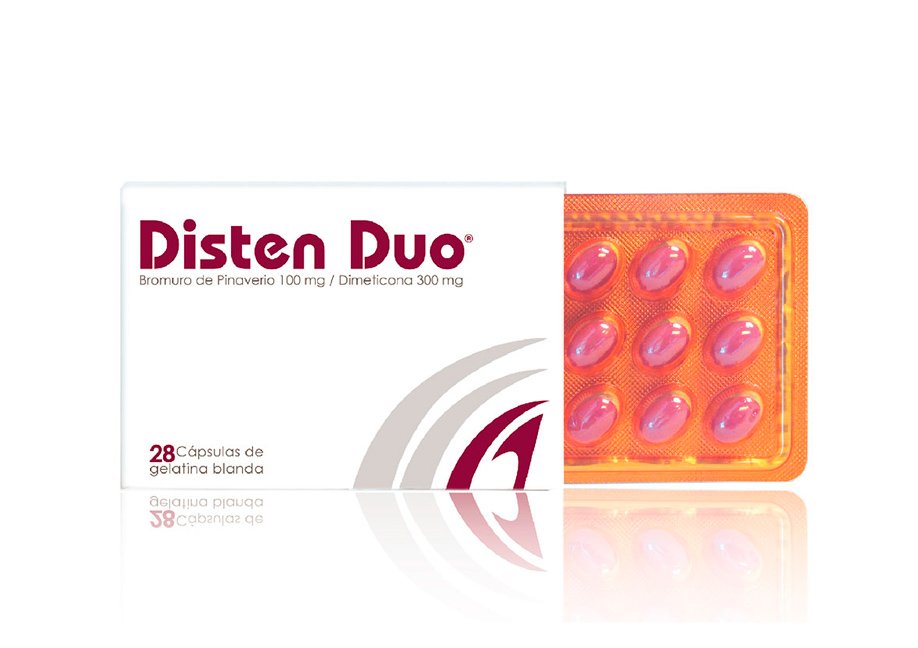Disten Duo es un medicamento que combina bromuro de pinaverio y simeticona, usado para tratar los síntomas del síndrome del intestino irritable y otros trastornos funcionales del sistema gastrointestinal.