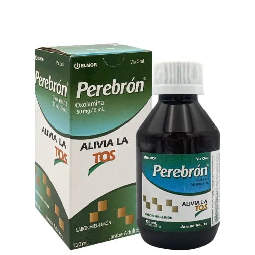 Perebron es un jarabe antiinflamatorio y antitusígeno que contiene oxolamina (generalmente como fosfato), utilizado para el tratamiento sintomático de la tos asociada a la inflamación e irritación de las vías respiratorias. Actúa disminuyendo la congestión y el edema en la mucosa respiratoria. Está indicado para afecciones como traqueobronquitis, laringitis y bronconeumonía.